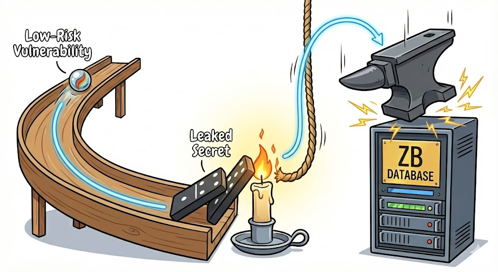 The platform connects these dots on a Security Graph. It tells us: "Ignore the 500 minor patches; fix this ONE server immediately because it is a gateway to the ZB Database."