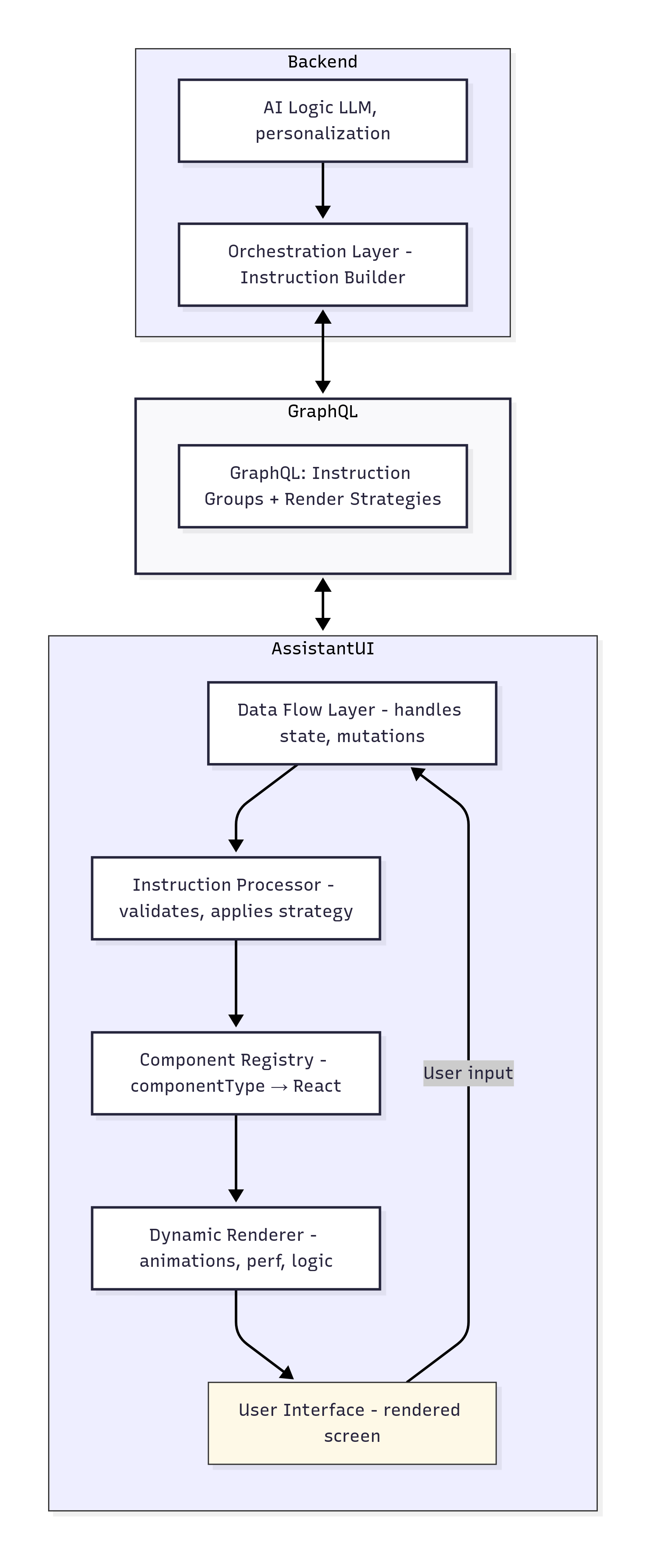 - RenderInstruction: A JSON object describing a single UI component to render.