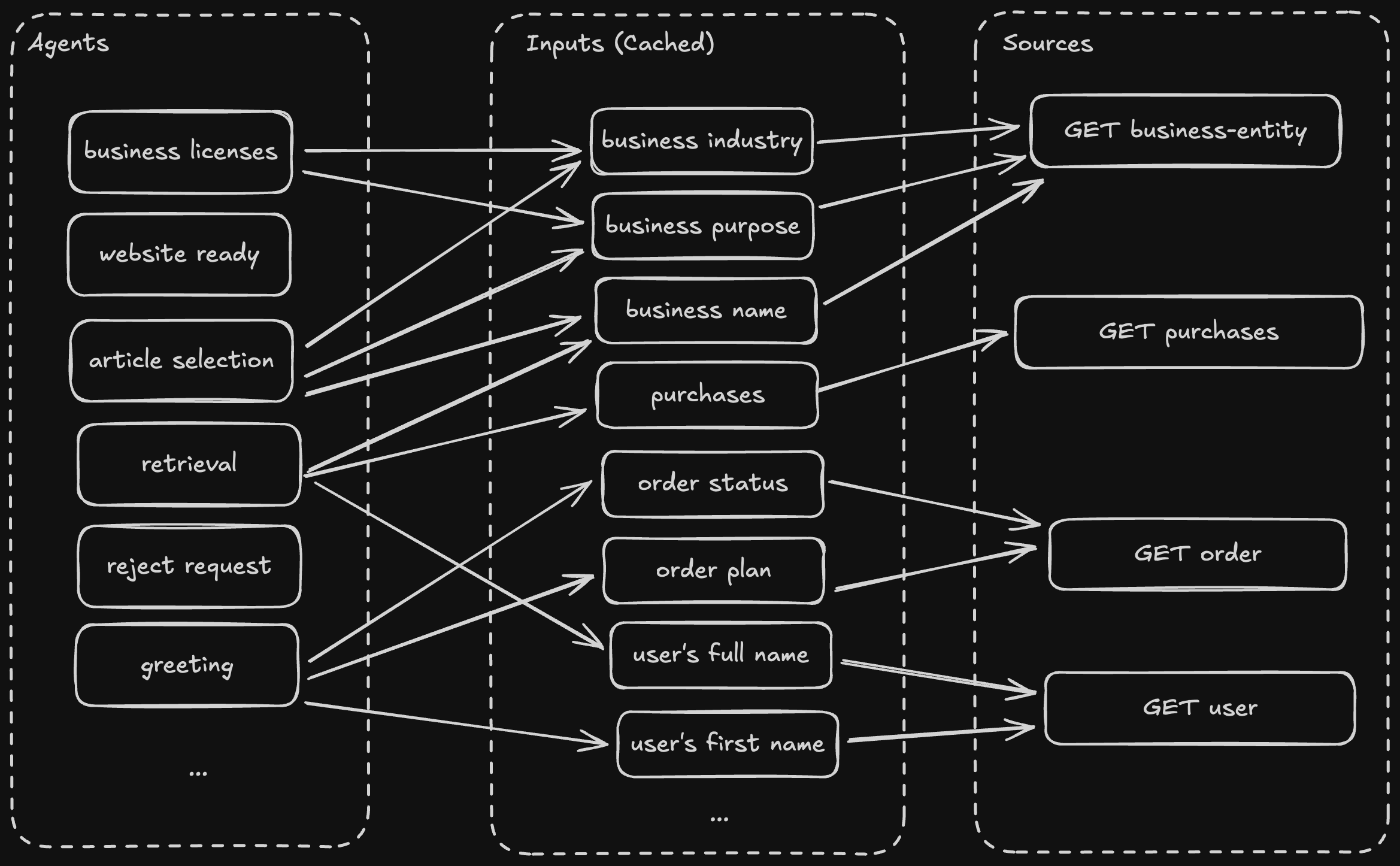 This is built on lessons learned from the very early days of ZenLabs, which was an experimental section of the ZenBusiness site where we could pilot and experiment with new AI tools and prompts. That system also had a fixed set of keys we could hydrate prompts with. At that time, we used a reverse ETL to pre-heat the input cache. That turned out to be challenging to maintain, so when it came time to figure out how Velo™'s input cache would work, we opted for live calls.