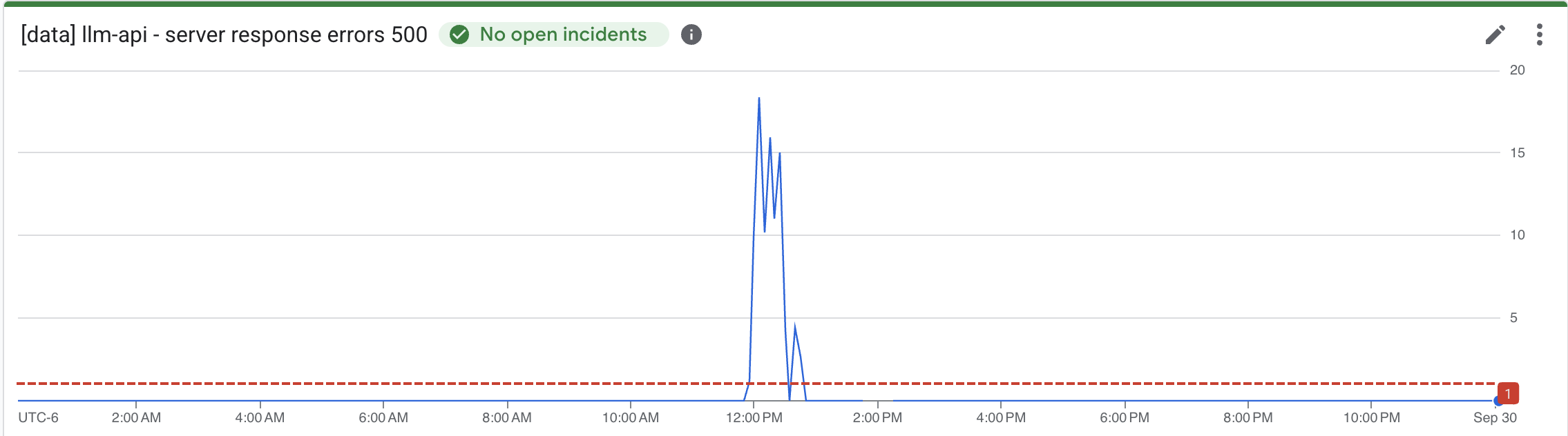 There was a Gemini incident on 9/29/25. This outage was The Big Red Button's big production debut. At around 11:55 AM CST, our model gateway (and its consumers) experienced a spike of 500 errors.
